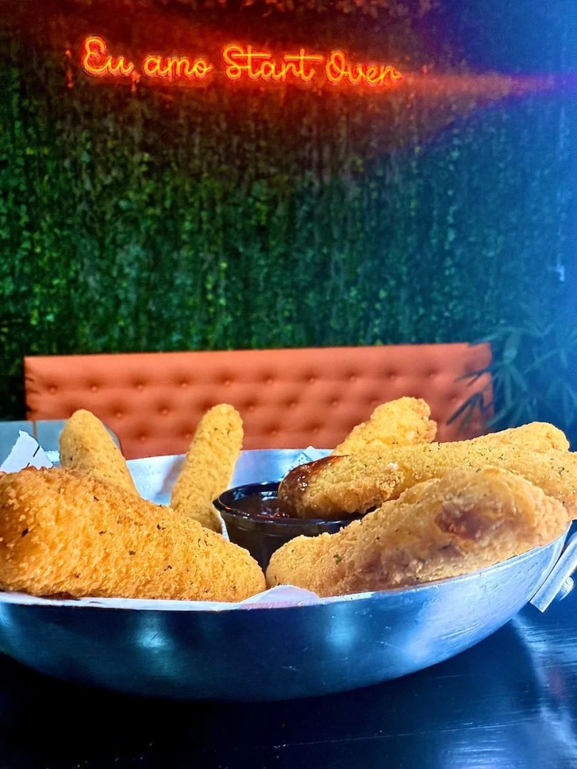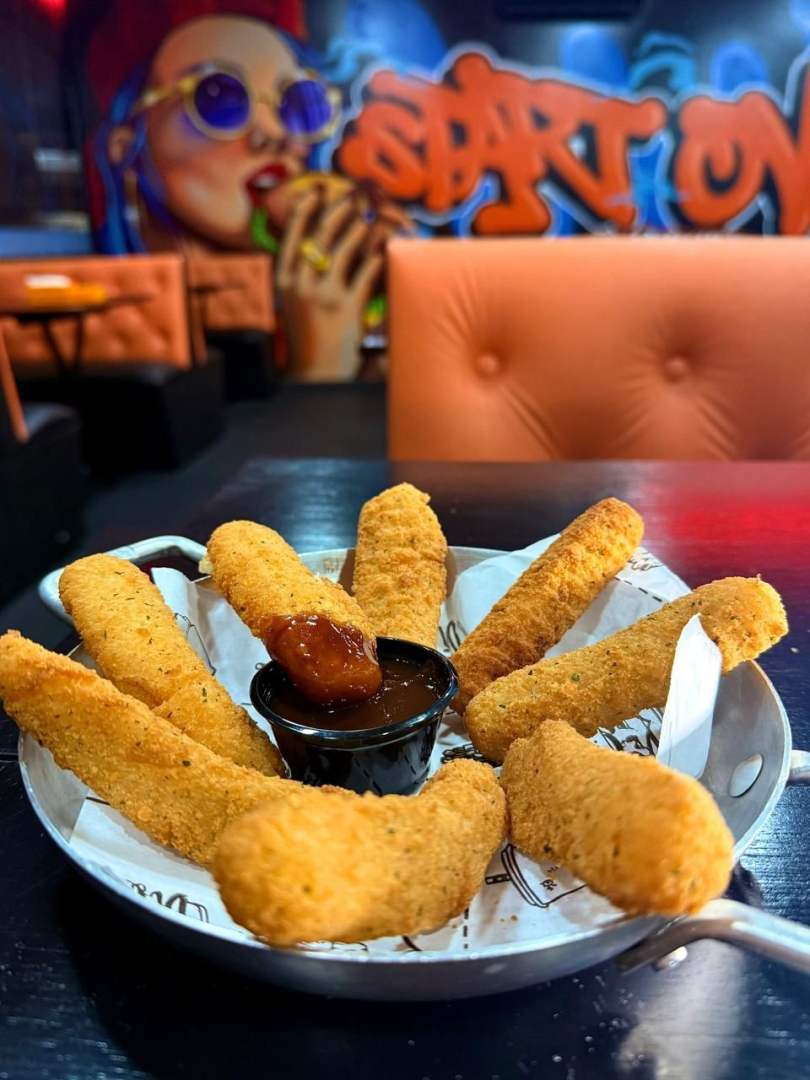 Palitos crocantes de mussarela empanada, dourados por fora e com queijo derretido por dentro. Uma explosão de sabor perfeita para começar sua experiência na Over.